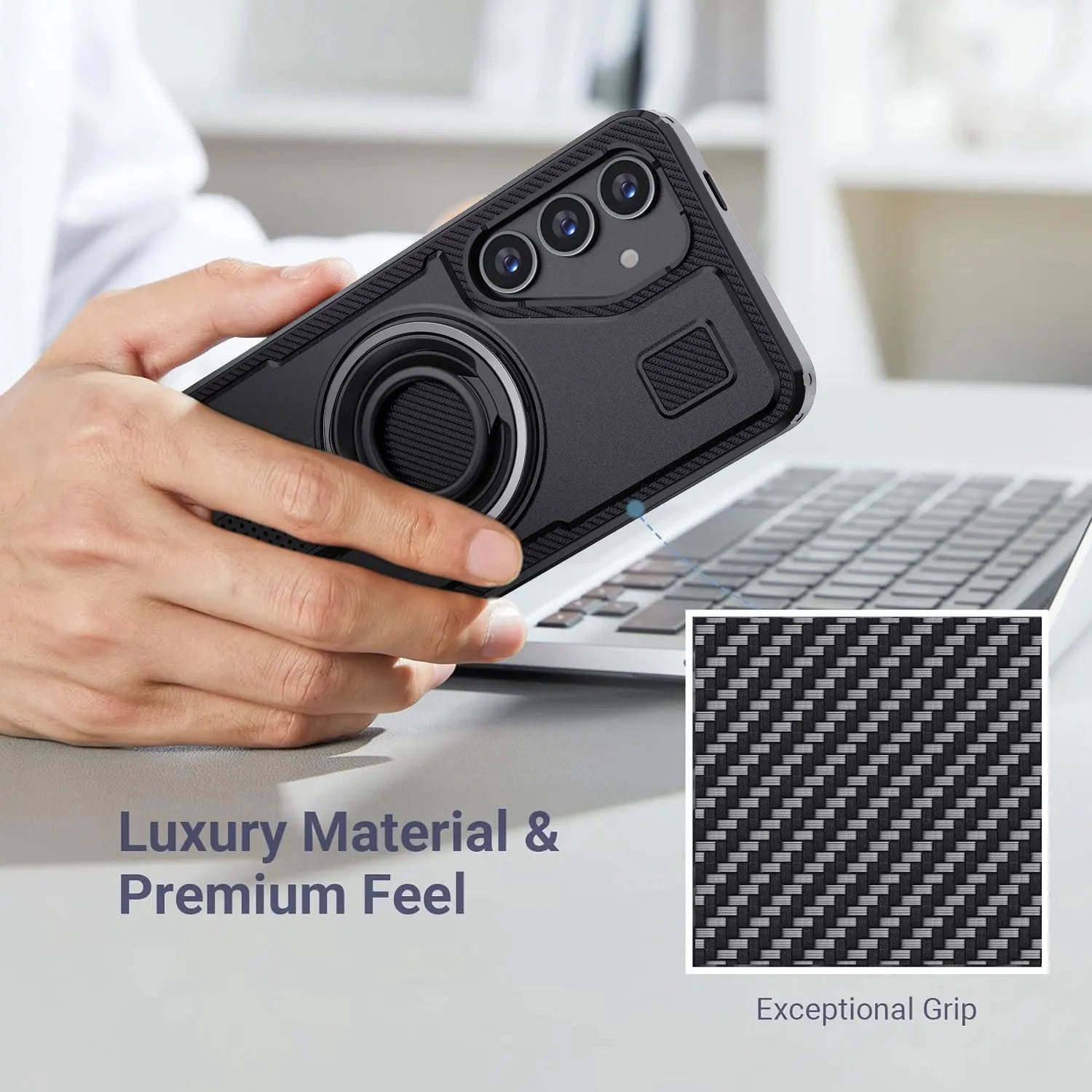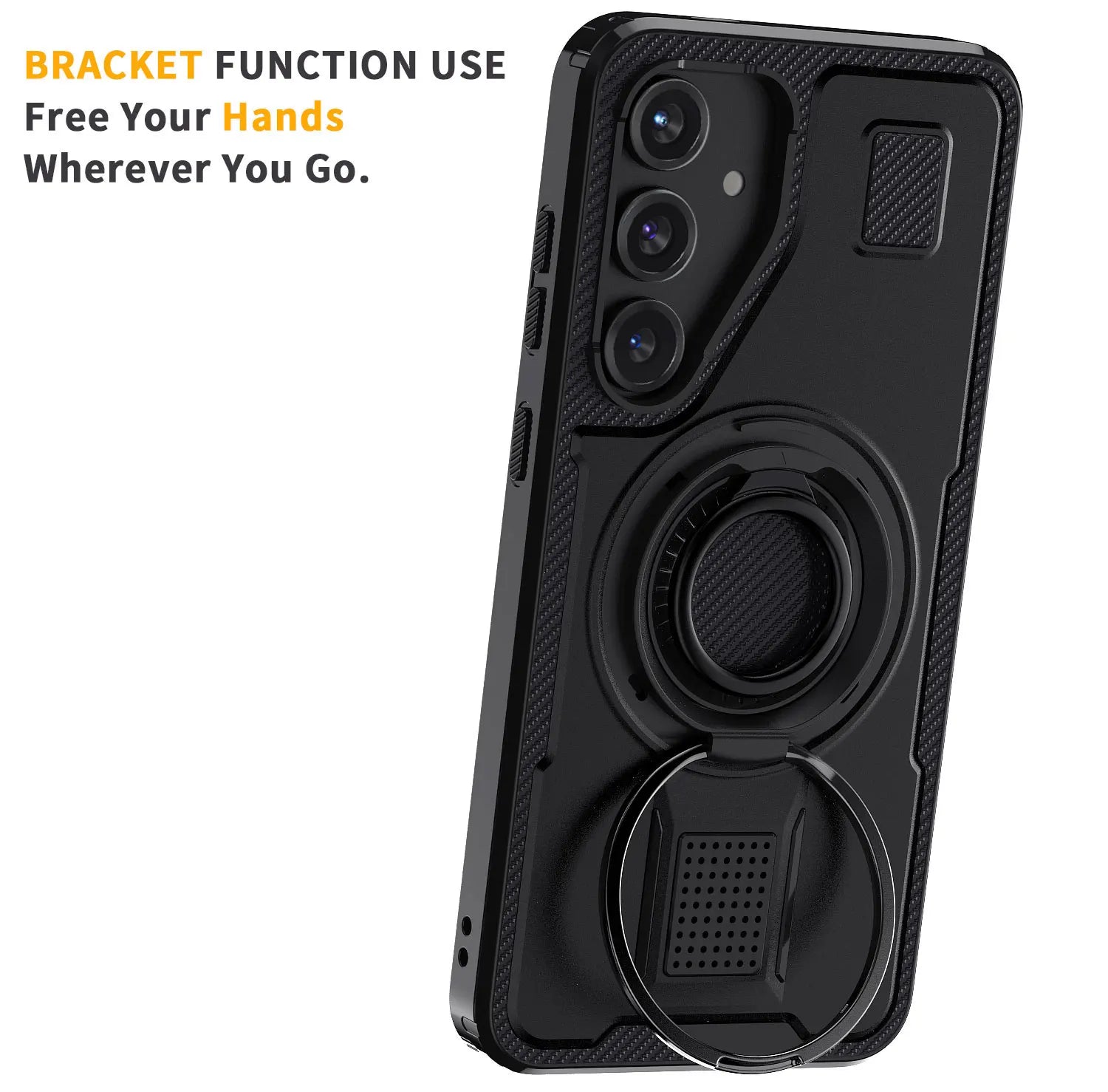 For Samsung Galaxy S25 S25 Plus S25 Ultra 5G Phone Case Hybrid Shockproof Double Ring Kickstand Rugged Cover Black